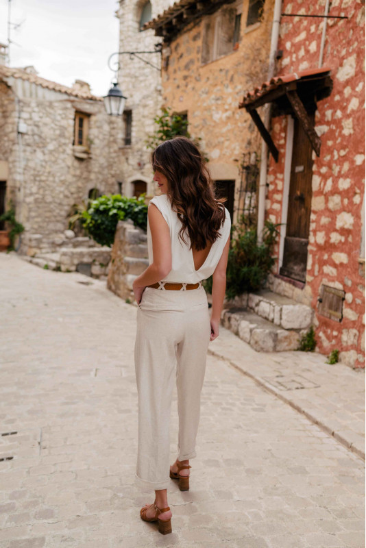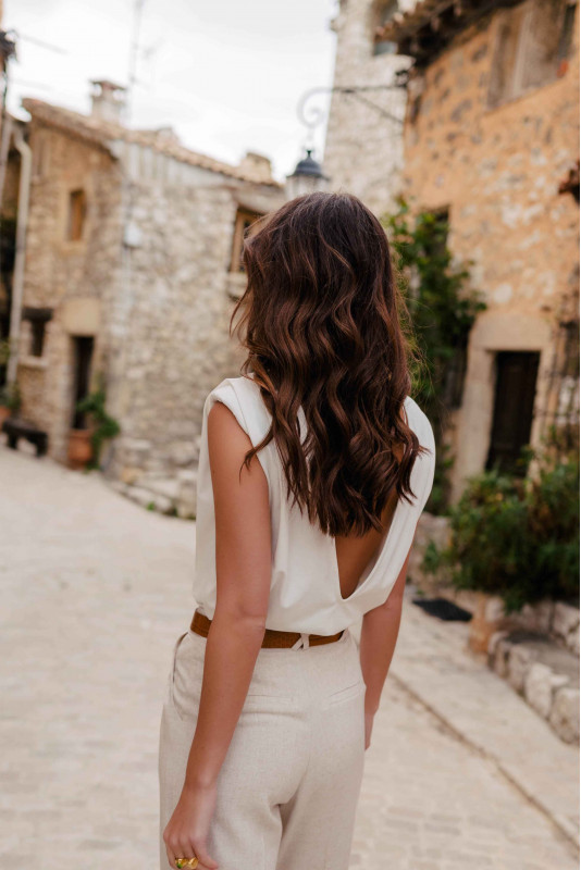 Le top Nabil est l'incarnation du chic féminin. Avec son décolleté plongeant au dos et son détail froncé aux épaules, il sera l'allié parfait de vos looks d'été.