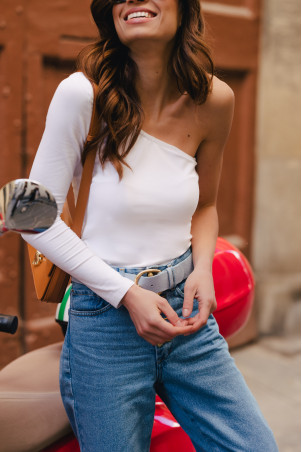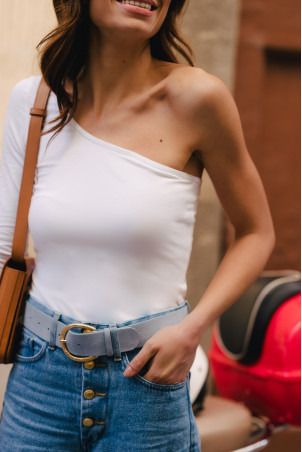 Notre top Lucy séduit par sa coupe ajustée et son asymétrie. Le top tendance pour la saison estivale !