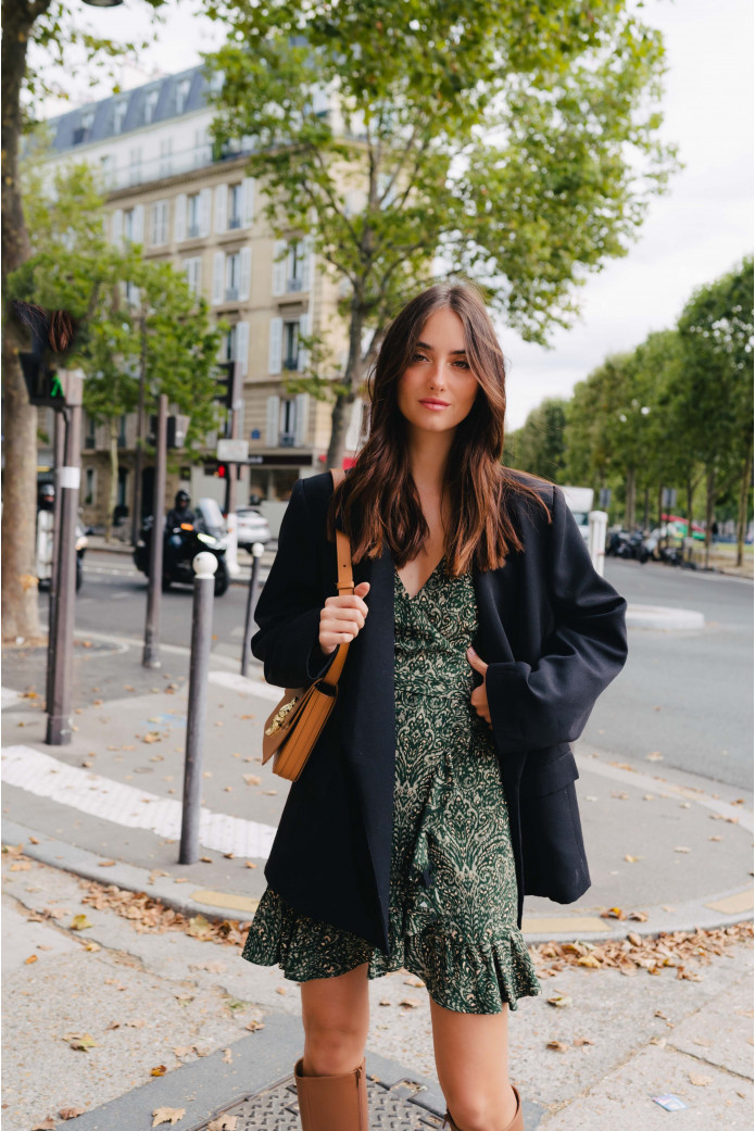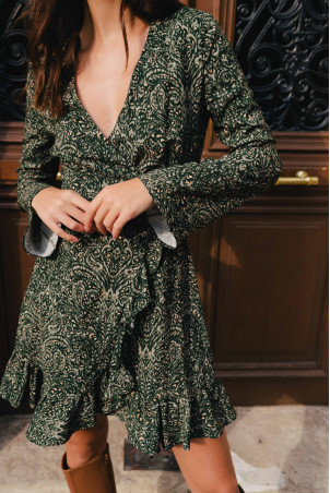 Description : Robe courte portefeuille volantée noeud sur le côté