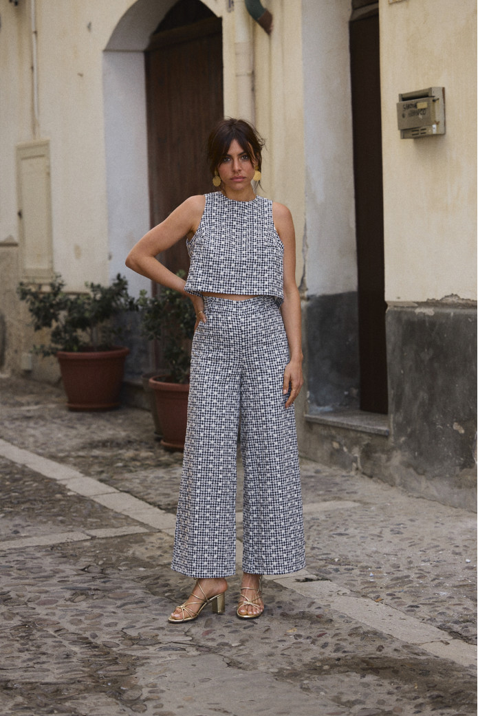- Top vichy brodé