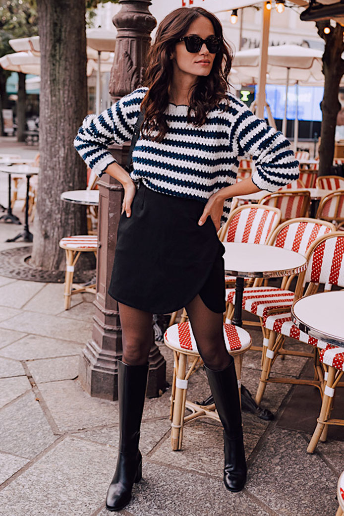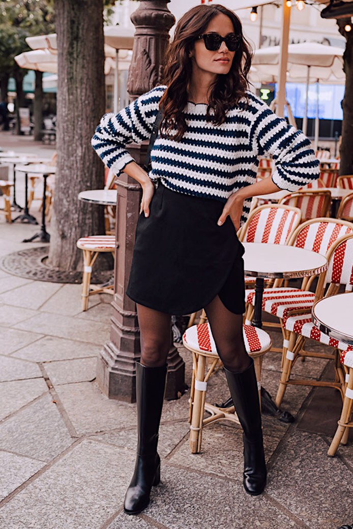 PULL DEGAS MARINE - 90€ / BOTTES MEL NOIR - 245€