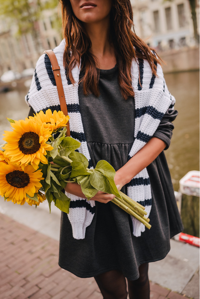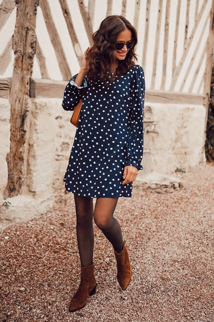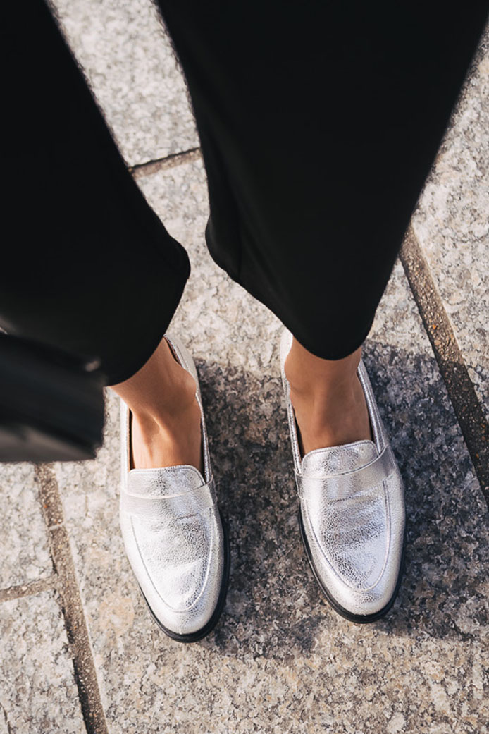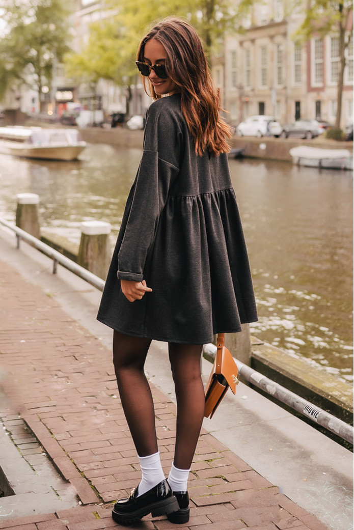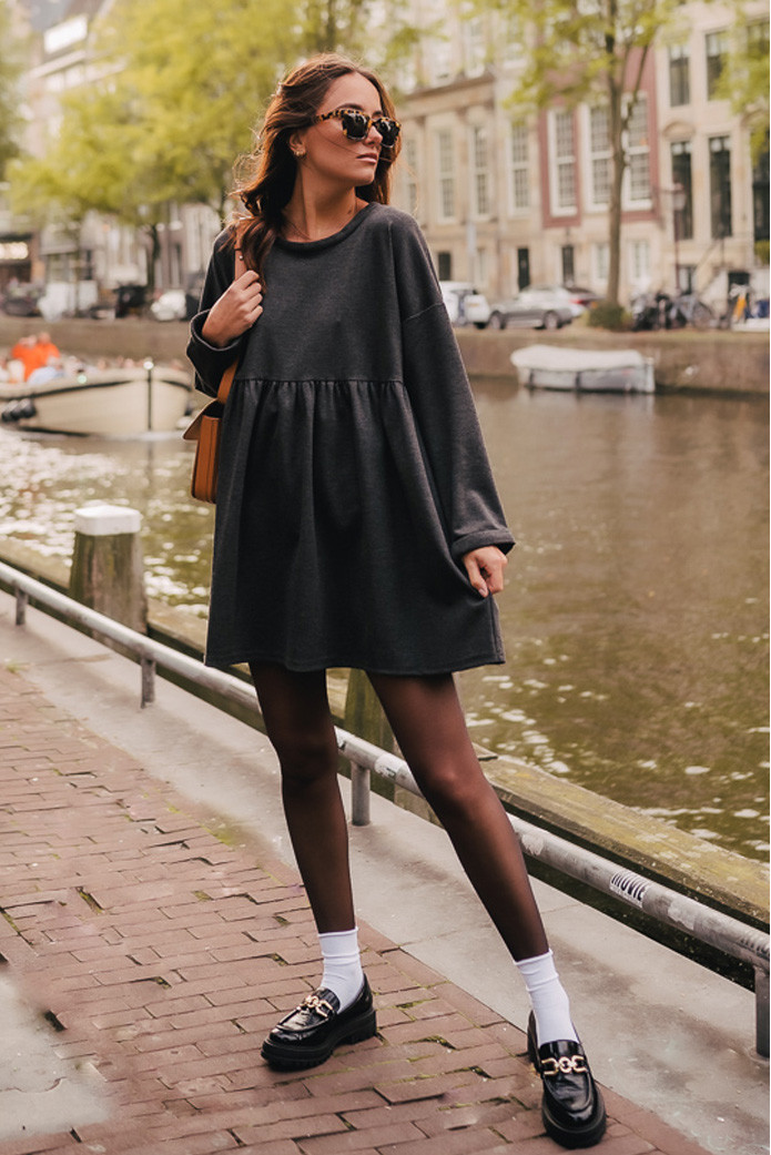 ROBE JANETTE GRIS - 130€ / MOCASSINS CONNOR VERNIS NOIR - 155€