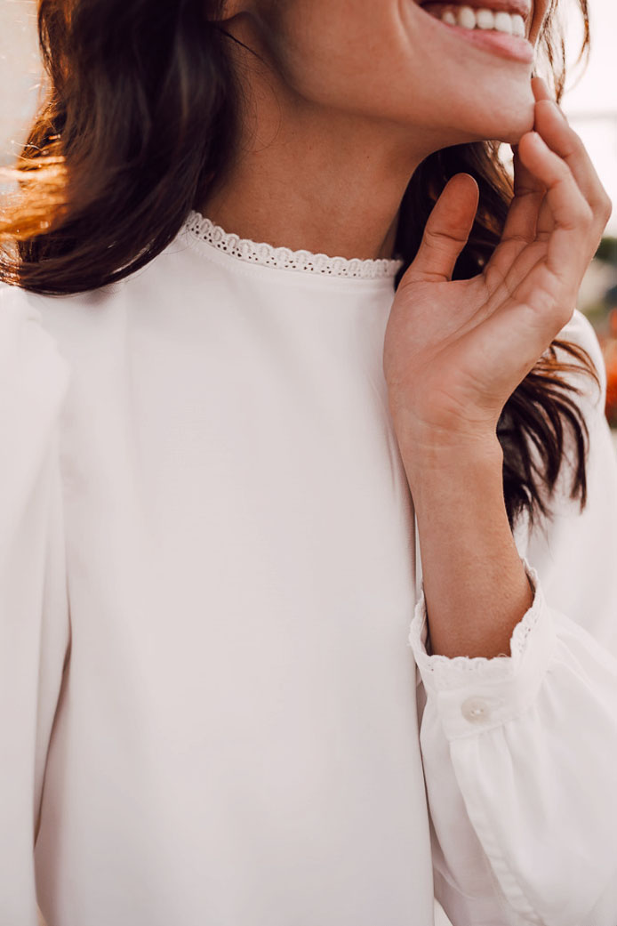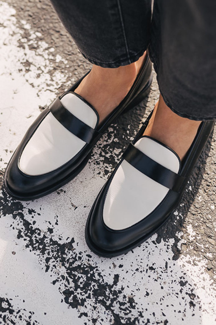 BLOUSE HENRIETTE BLANC - 90€ / MOCASSINS AMBER BICOLORE - 145€