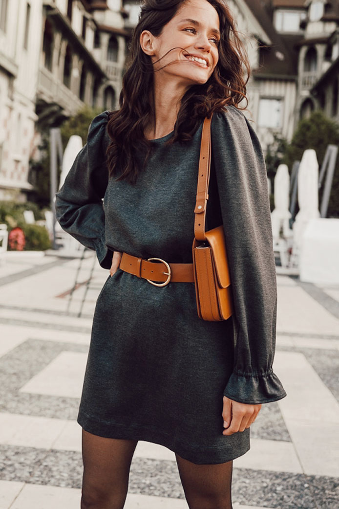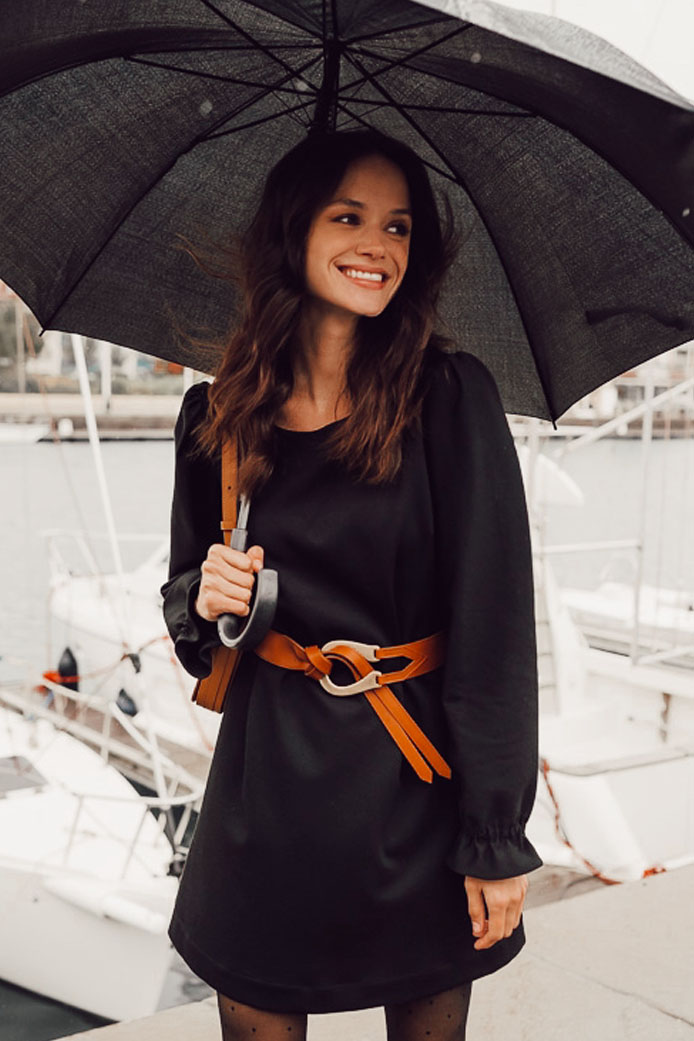ROBE TESS NOIR - 130€ / CEINTURE ELI CAMEL - 95€