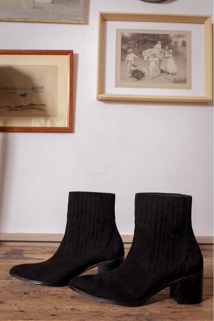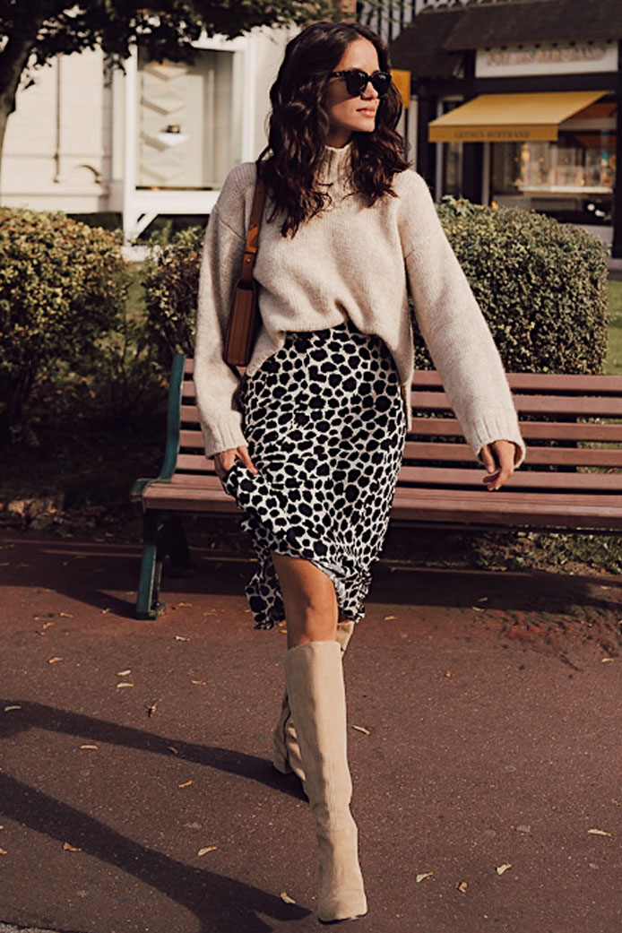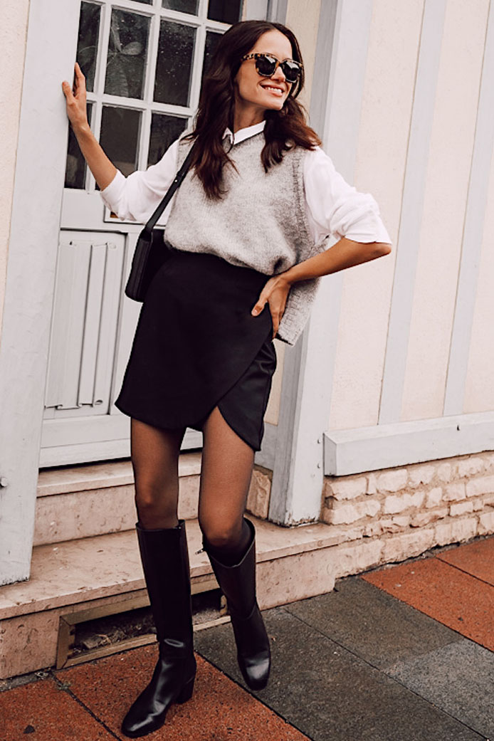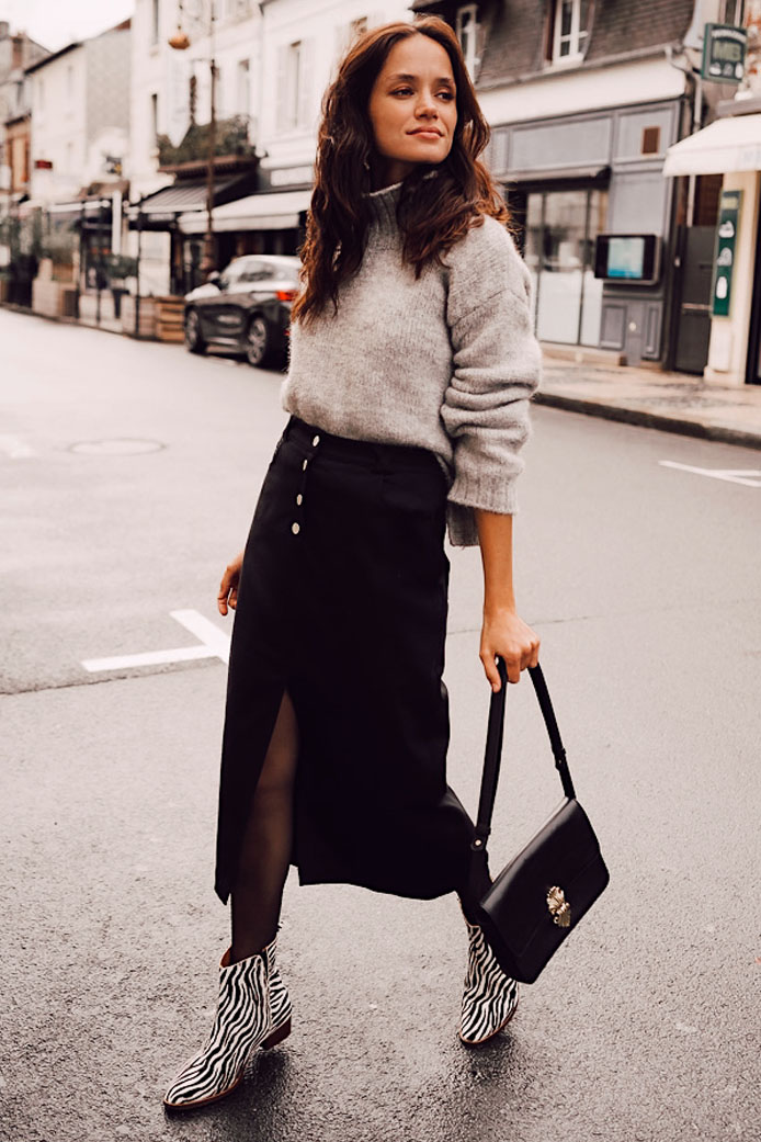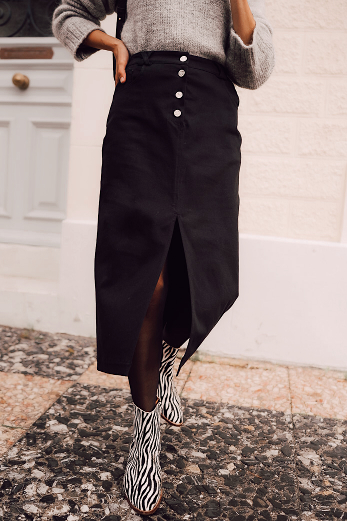 JUPE STELLA NOIR - 95€ / BOTTINES MILIA ZÉBRÉ - 190€