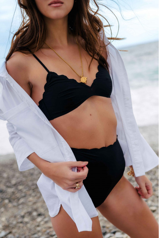 Our Viny bikini top will be perfect with the black Vicy ruffled bottom.