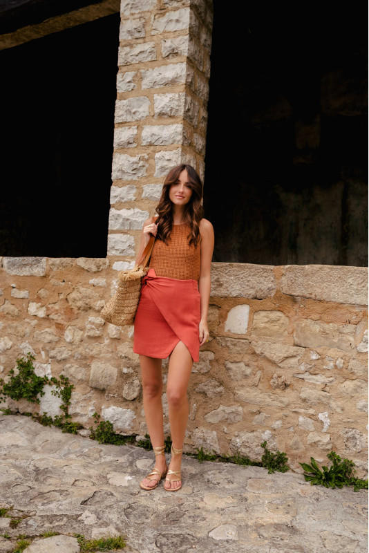 The essential little skirt for all summer wardrobes. With its elegant slit on the thigh, it will be perfect paired with heels or sneakers.