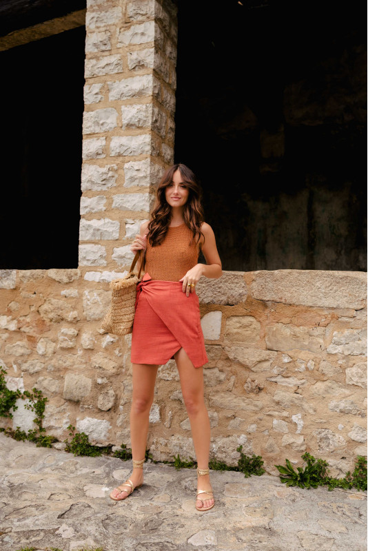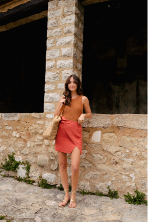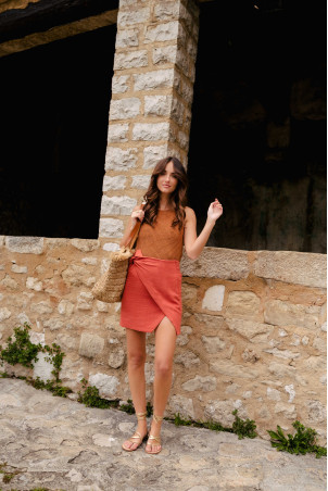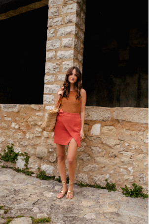 ELISA SKIRT LIN VISCOSITY TERRACOTTA