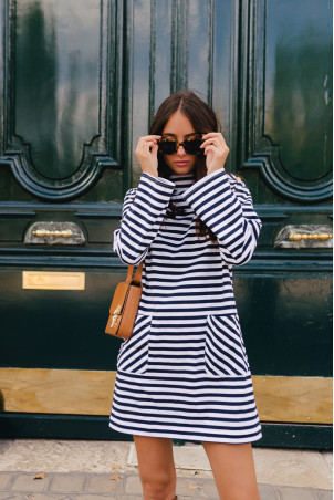 - Short dress with 4 golden buttons on the left shoulder
