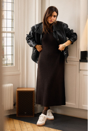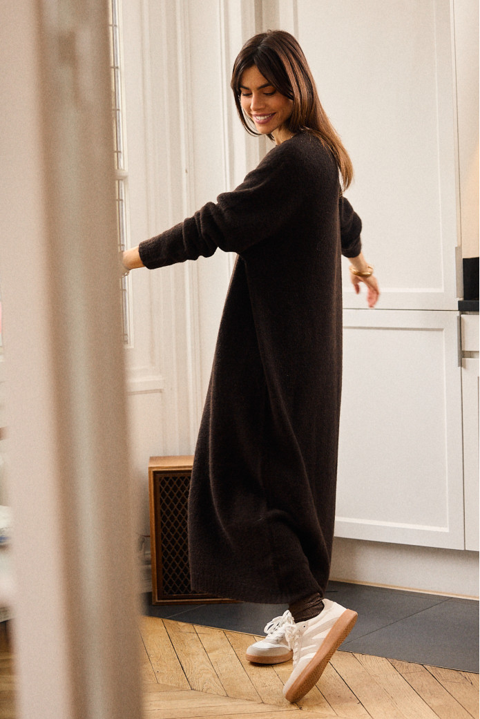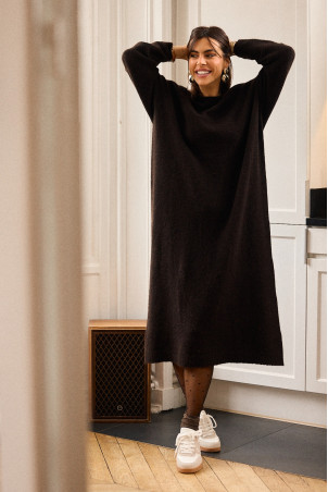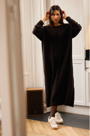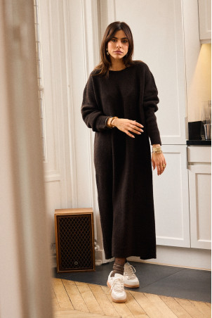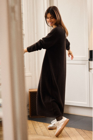 - Straight and loose fit- Above ankle length- Round collar- Long sleeves, dropped shoulders- Made in Italy