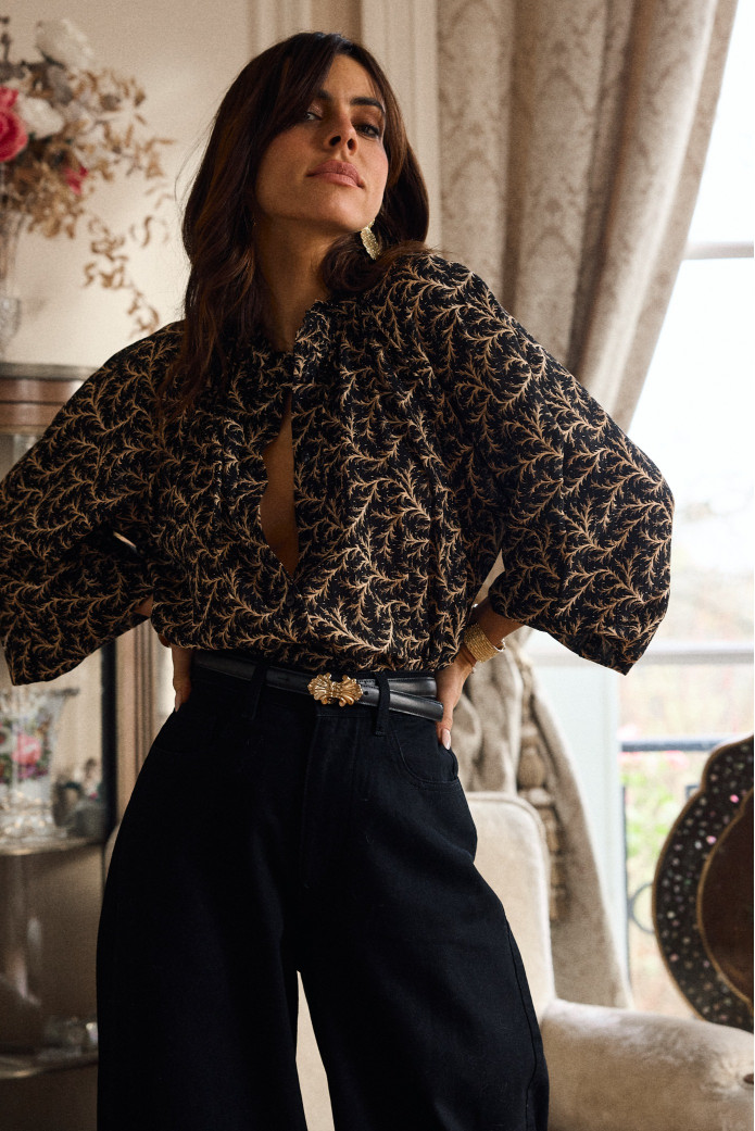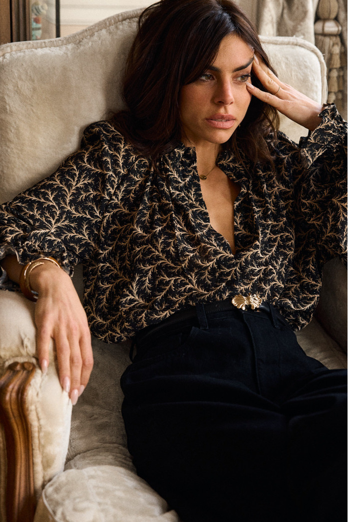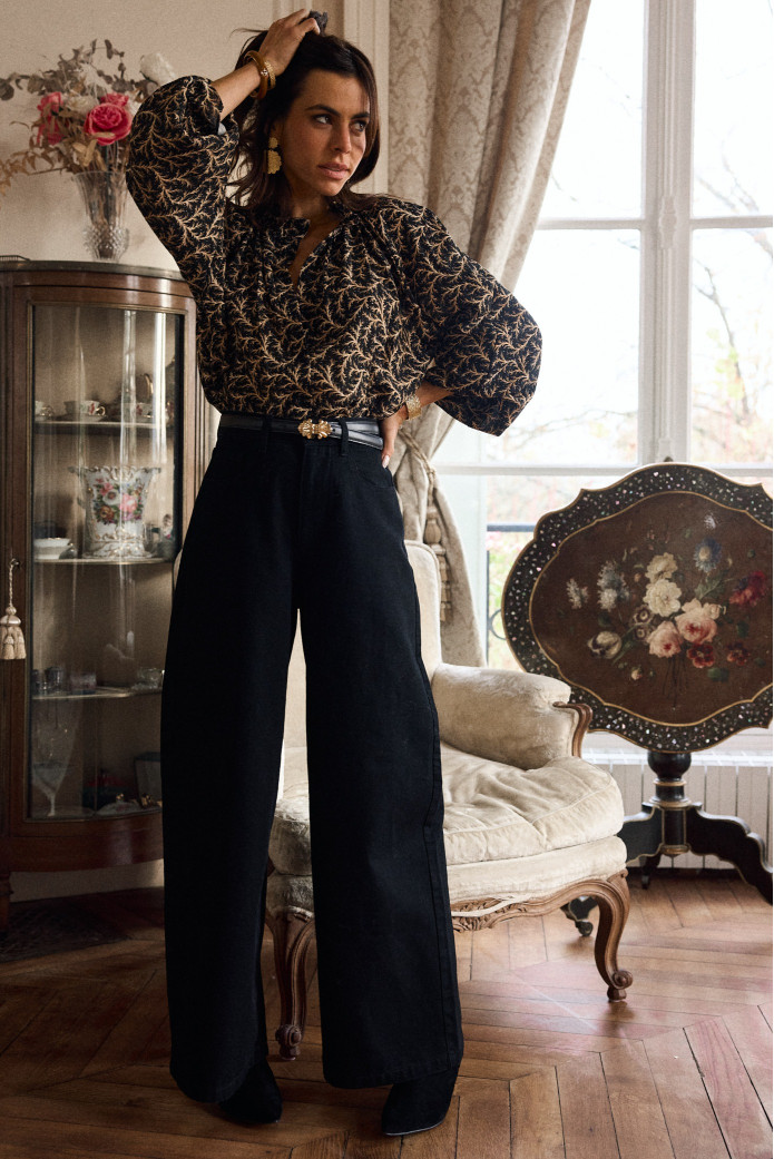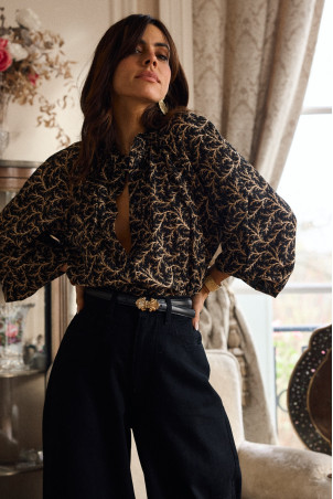 - Raglan sleeves gathered with elastic at the wrist and finished with a ruffle