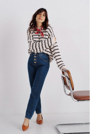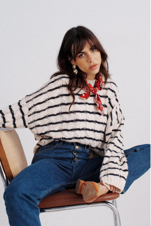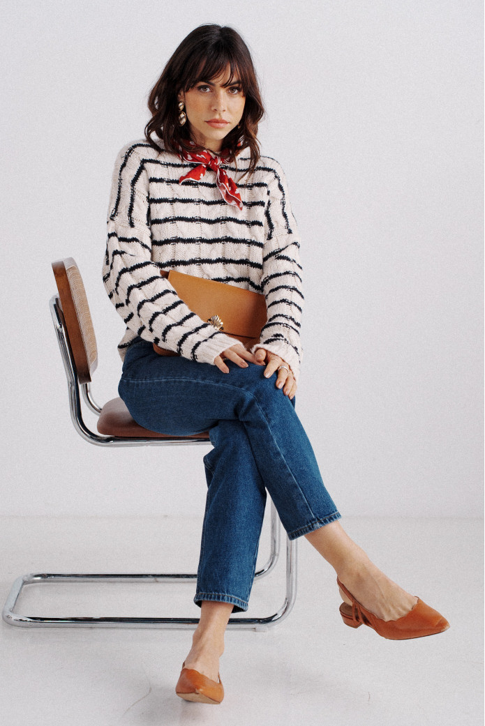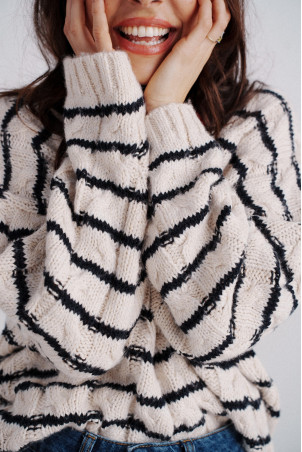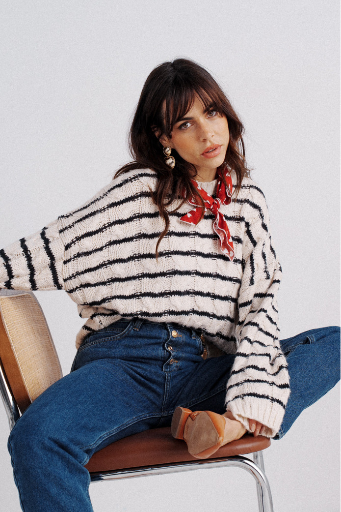- Striped tunic sweater with cable knit