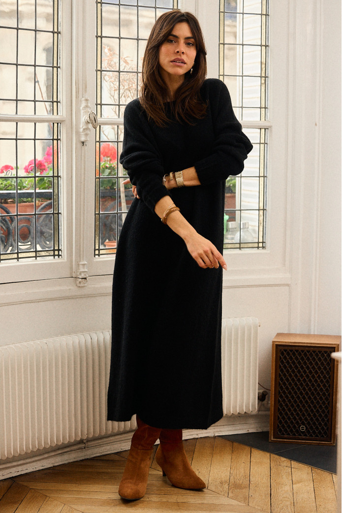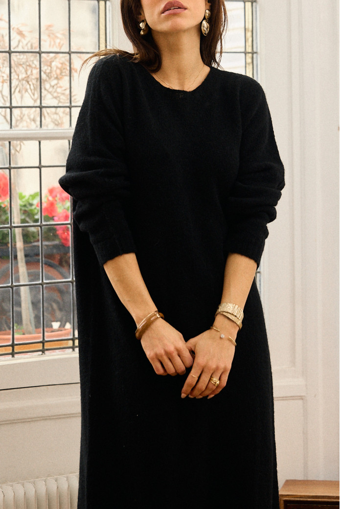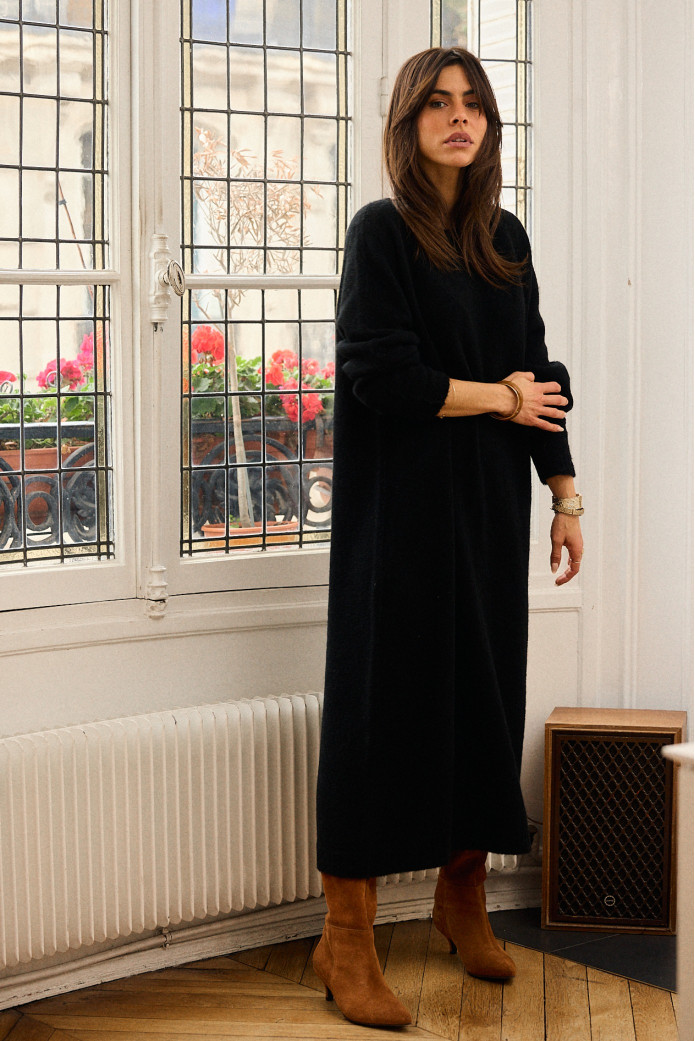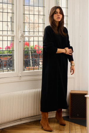 - Straight and loose fit- Above ankle length- Round neck- Long sleeves, dropped shoulders- Made in Italy