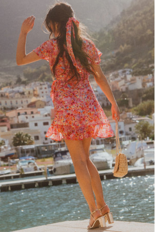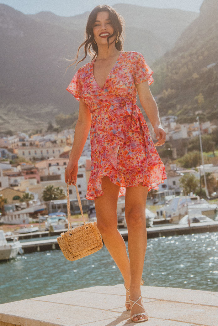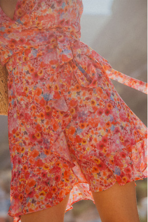 - Short wrap dress with ruffles