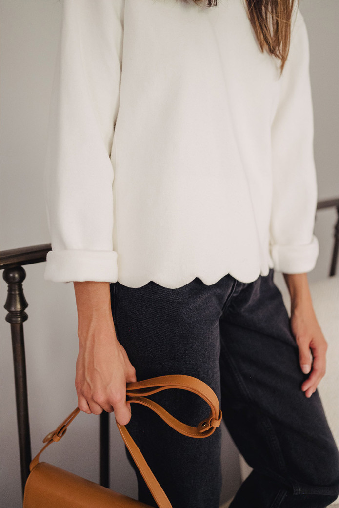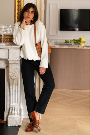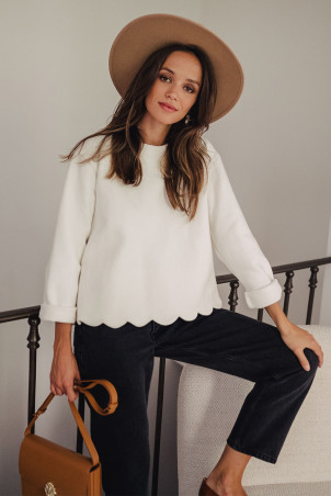 - Long sleeve blouse with scalloped edges