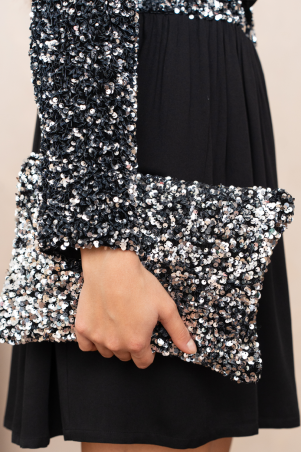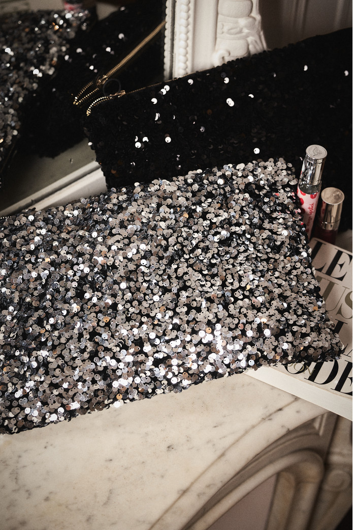 ANISSA SILVER SEQUIN POUCH