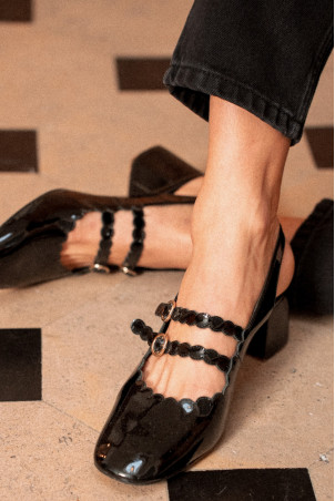 - Black patent scalloped Mary Janes