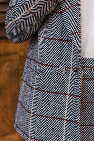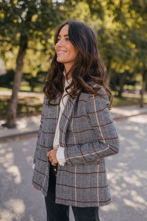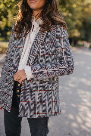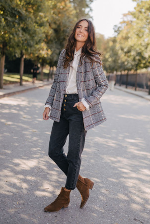 - Veste de tailleur droite volume sous fesses fente au dos, boutons dorés