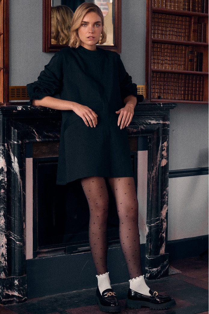 - Manches raglans et resserrées par un élastique, finis par un petit volant