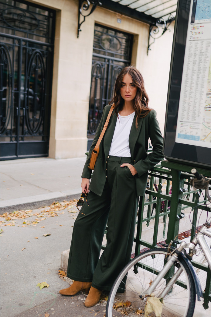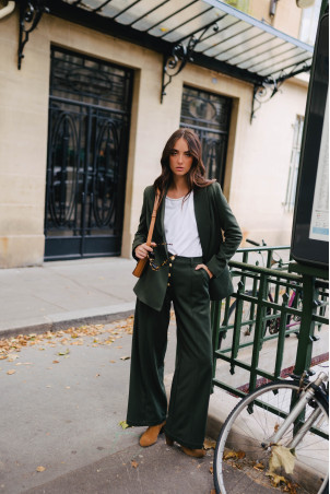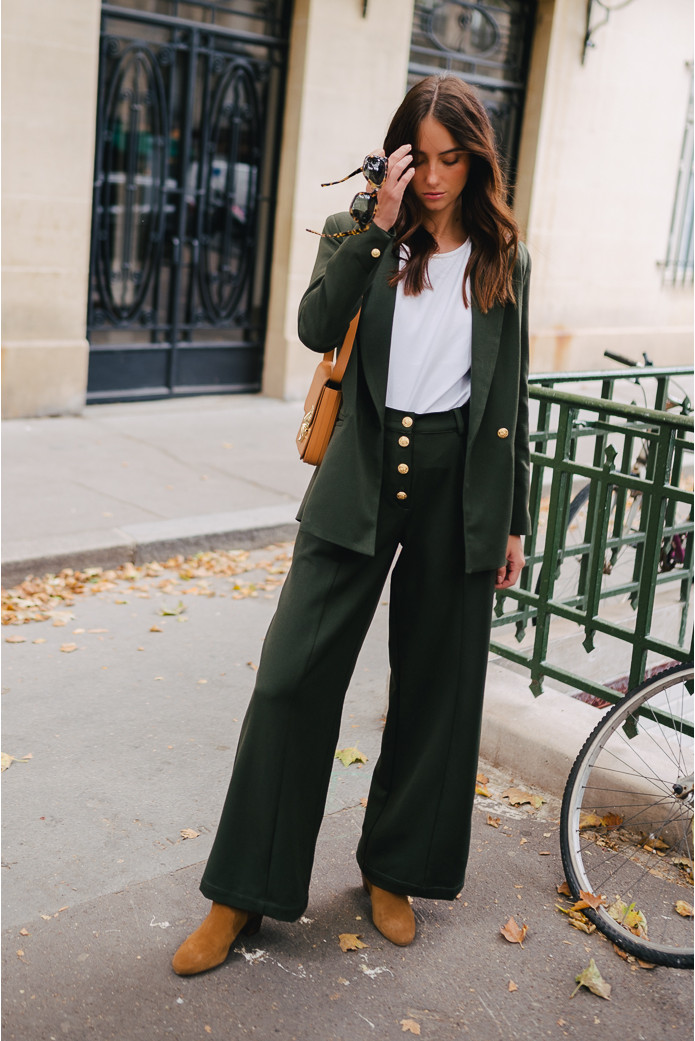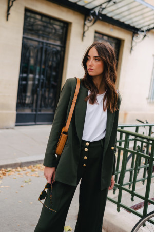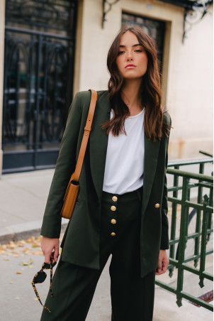 - Veste de tailleur droite volume sous fesses fente au dos, boutons dorés